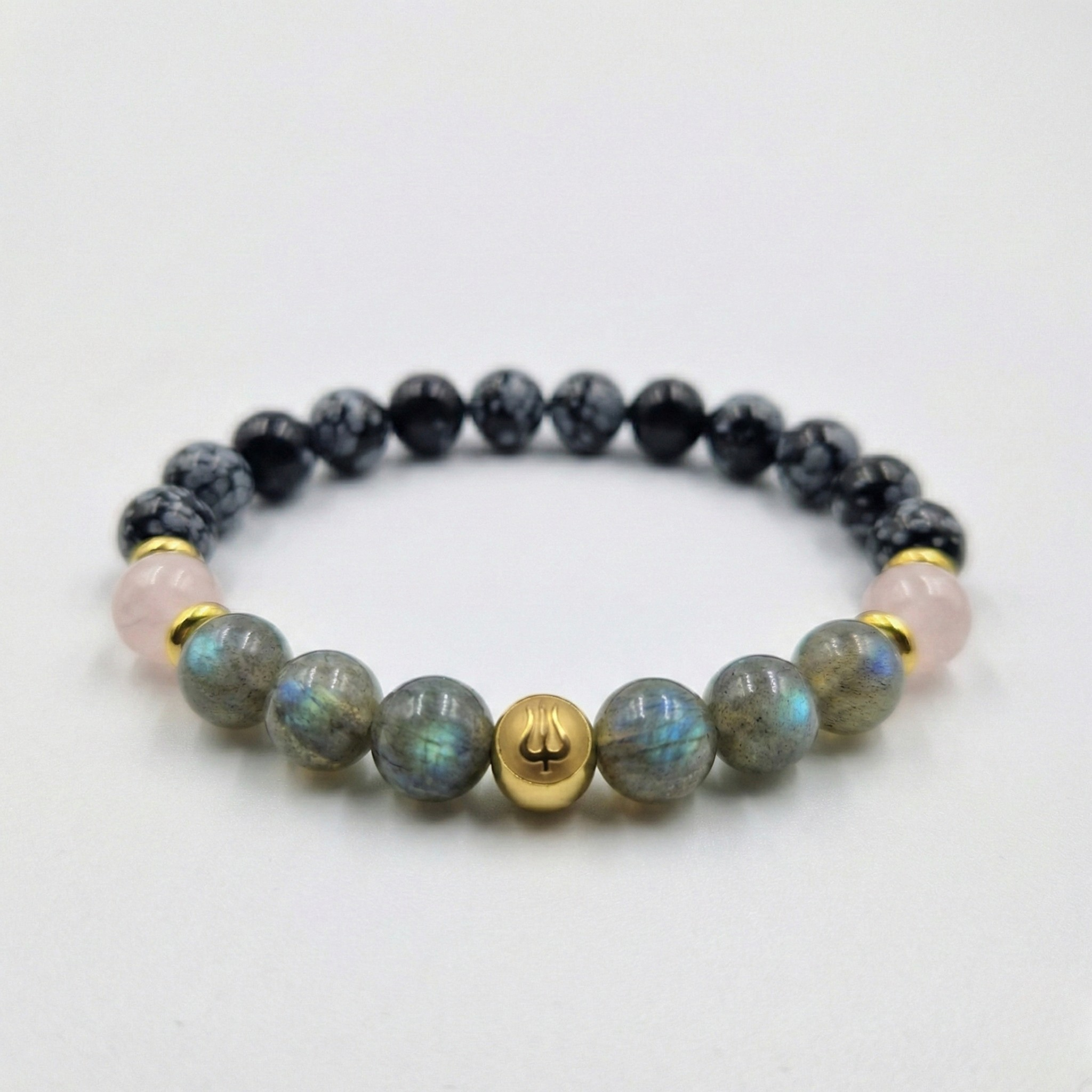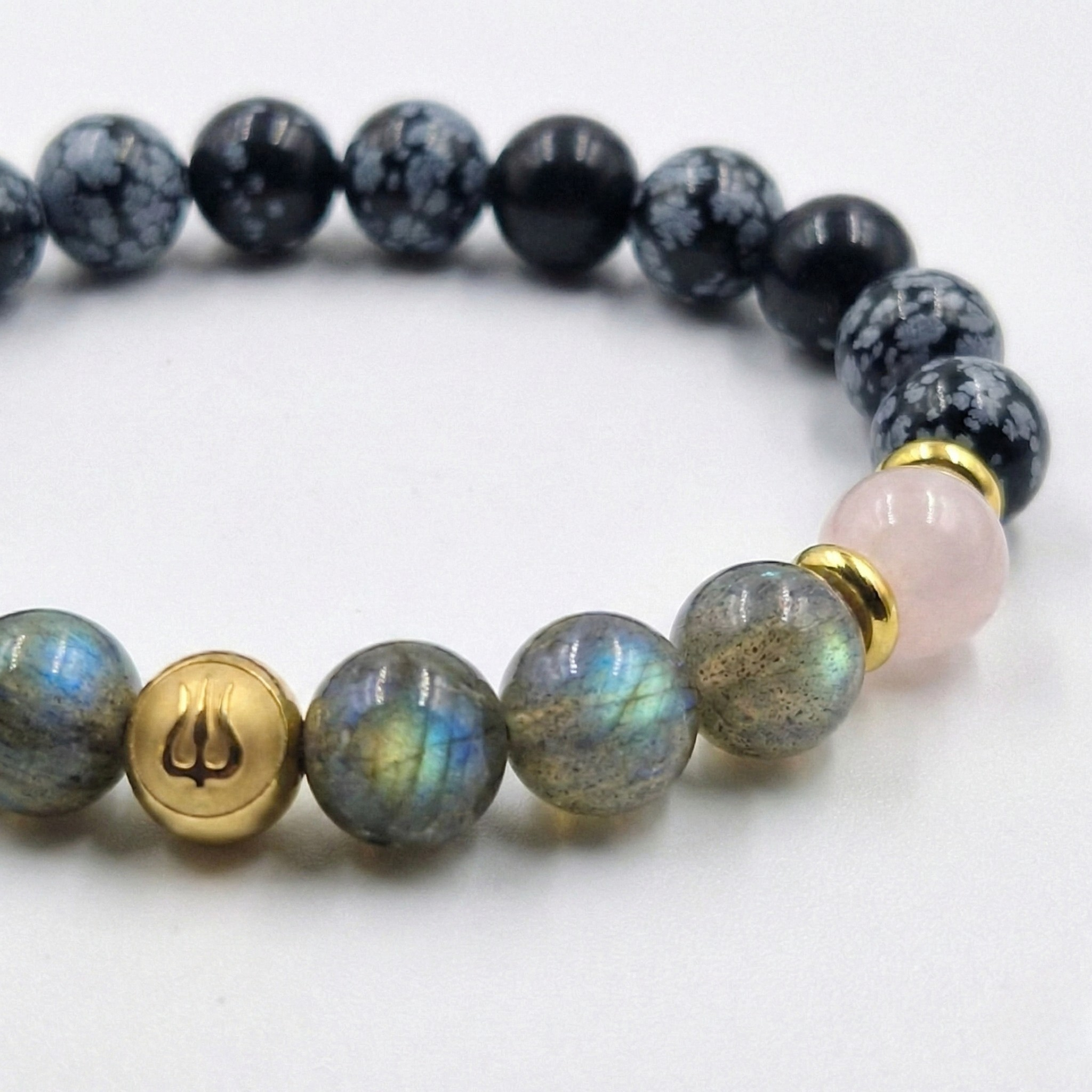 Bracelet Vierge Année 2026 en Labradorite, Quartz Rose et Obsidienne Flocon de Neige
